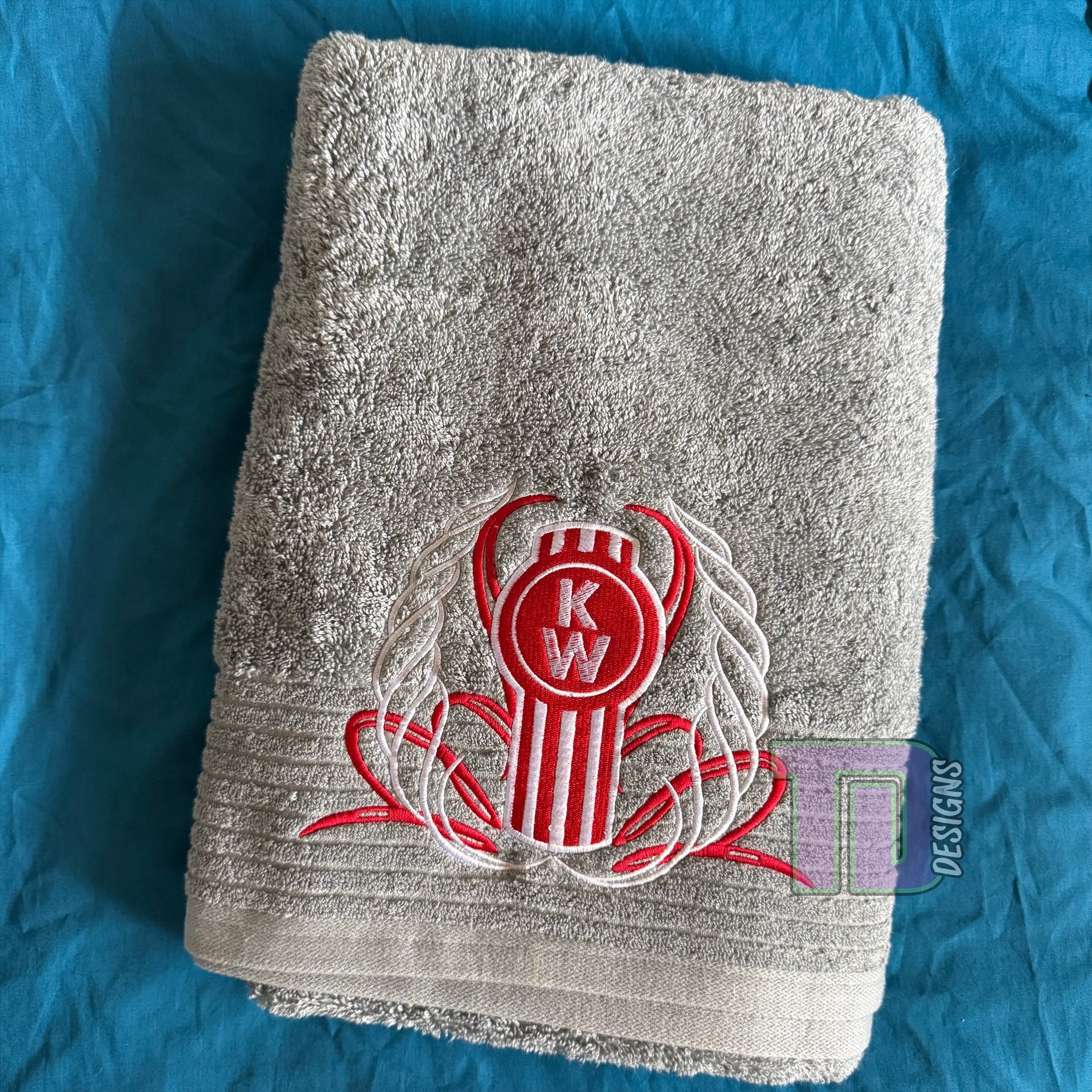 These bath sheets are 75cm x 1.5m which is a great size for anyone. The embroidery design is made to fit 200mm high so its not too big yet not too small.